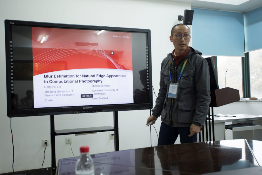 教师刘东威参加了此次学术研讨会,并就其论文“Blur Estimation for Natural Edge Appearance in Computational Photography”做口头专题报告。此外,刘东威老师与奥克兰理工大学教授、新西兰皇家科学院院士Reinhard Klette博士在Workshop on Vision meets Graphics上共同完成题为“Stereo Vision for Artistic Photo Rendering”的特邀报告。