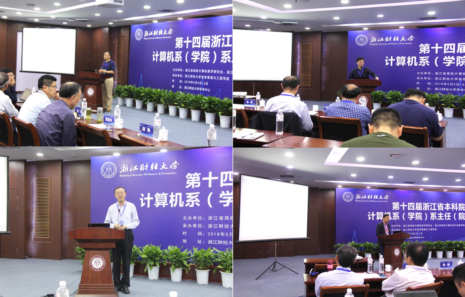 信工学院院长张文宇教授、浙江省软件考试实施办公室主任陈敏玲研究员分别以“财经院校新工科专业建设实践与思考”、“信息技术新工科产学研联盟助力专业建设”、“新形势下人工智能教育与学科建设”、“计算机类本科专业教学质量国家标准解读”、“AI+智慧学习,产教融合新征程—共建人工智能学院项目一体化解决方案”、“跨学科协作与研究生精细化培养探索与实践”和“全国计算机资格考试发展与浙江实施情况”等主题分别作了精彩的报告。
