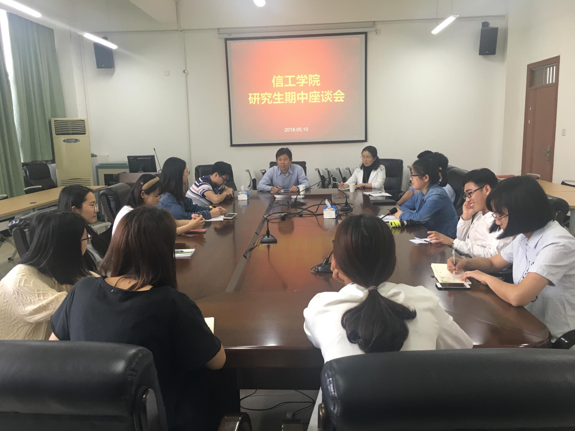 15级5位研究生考上985、211和境外名校博士研究生的喜讯,勉励在座研究生以这5位同学为榜样,勤奋学习,勇攀科学高峰。随后他询问了在座研究生的学习、生活以及论文进展情况,并对大家的学习以及论文发表寄予厚望,希望研究生能充分利用好课余时间,多阅读文献,特别是英文文献,争取早日发表质量较高的论文。最后张帅老师对研究生关于论文研究方向、课程设置等方面的问题做了详细解答。通过这次期中座谈会,学院进一步了解了学生的学习和生活进展,研究生也进一步明确了自己今后的努力方向。