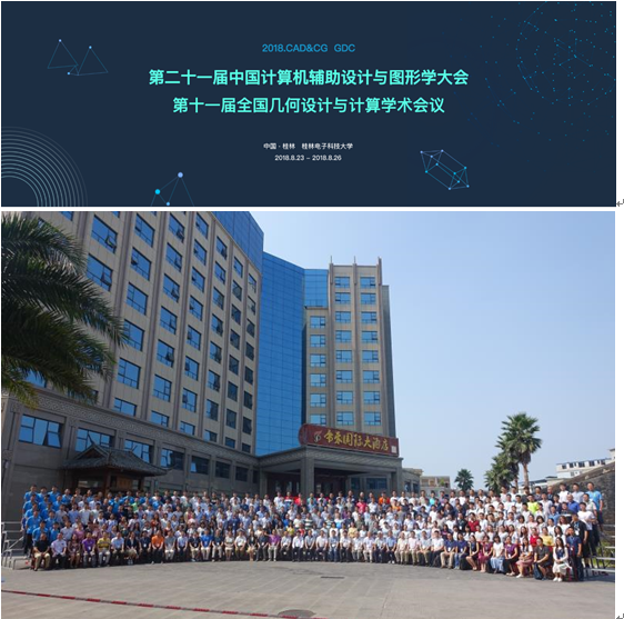 2018年8月23日,第二十一届中国计算机辅助设计与图形学 (CAD&CG 2018)、第十一届全国几何设计与计算 (GDC 2018) 联合学术会议在桂林举行,CAD&CG 2018由中国计算机学会(CCF)主办(会议编号:CCF-18-TC07-01N),GDC 2018由中国工业与应用数学学会(CSIAM)主办,联合大会由桂林电子科技大学承办。