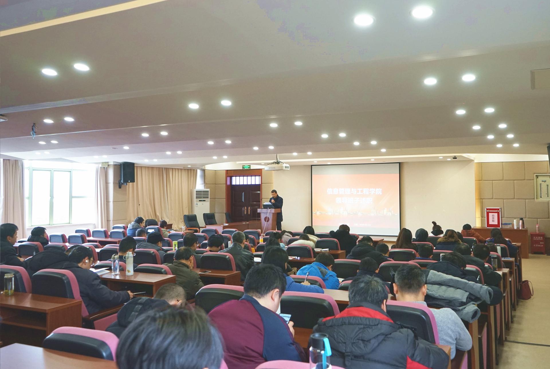 学院领导班子述职会由冯睿老师主持,组织部田聪老师参加,学院领导班子张文宇院长、冯睿书记、张帅副院长、陈远高副院长和陆颋浩副书记依次对2018年度的工作情况向全院教职工做了总结和汇报,参会人员依照中层干部考核要求对司机社
