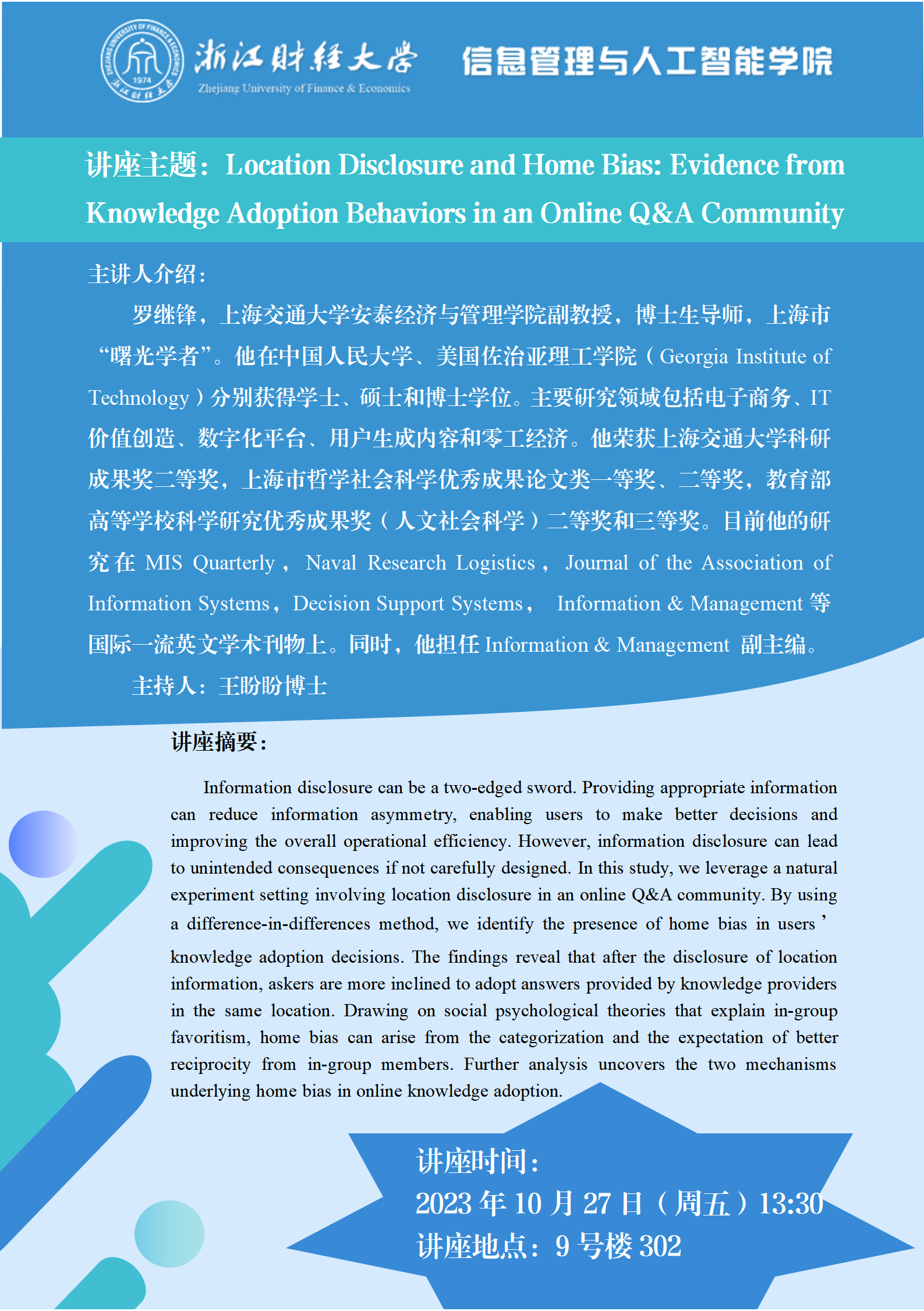 “数智钱潮”讲座系列预告| 2023年第4期(总第10期)