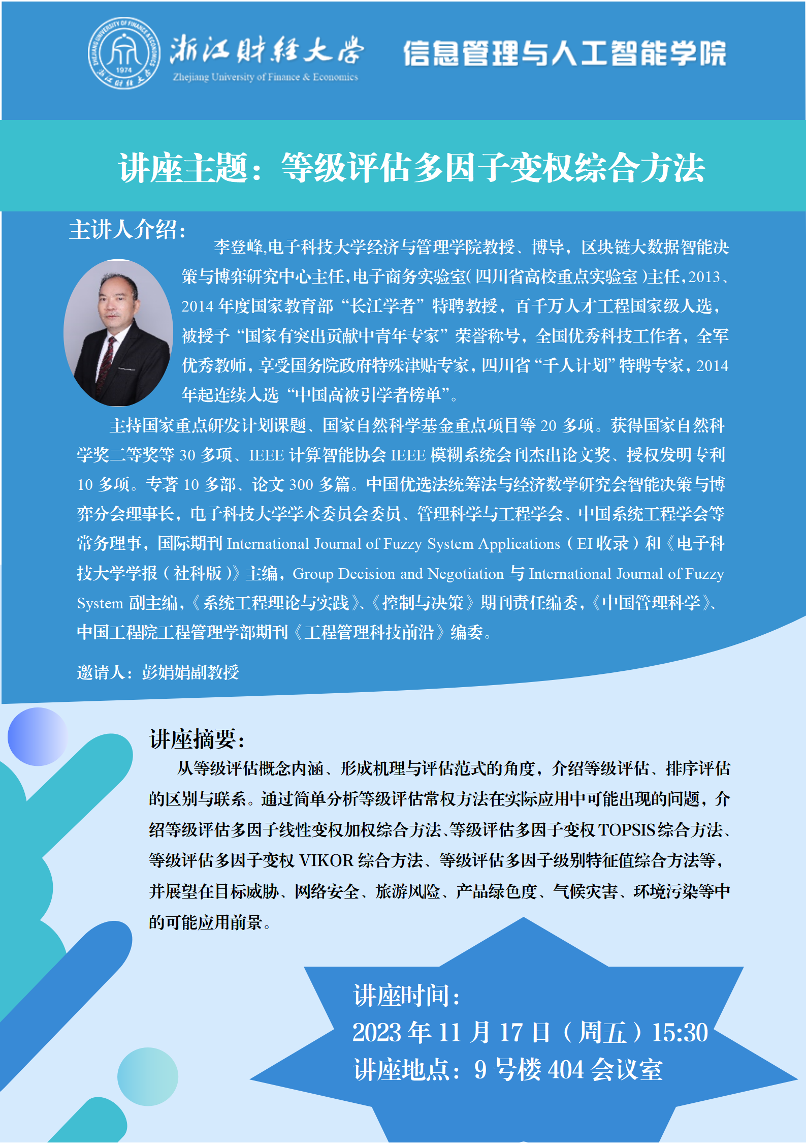 “数智钱潮”讲座系列预告| 等级评估多因子变权综合方法