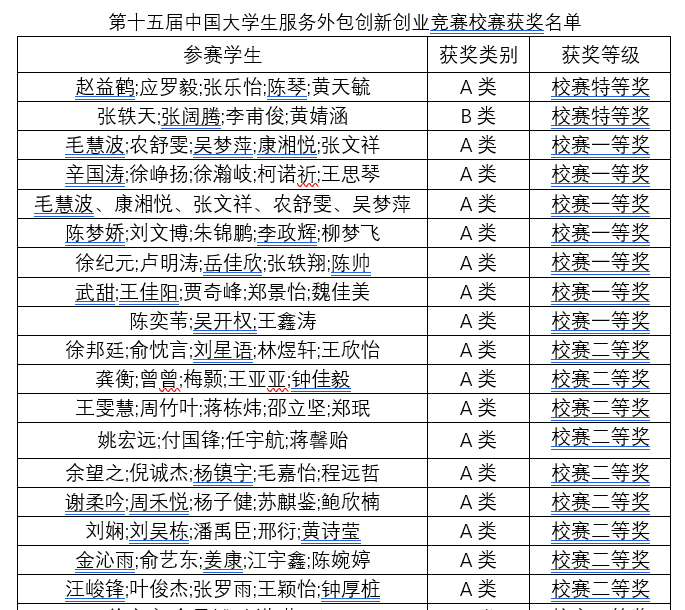 司机社 第十五届中国大学生服务外包创新创业大赛校赛已圆满结束,本次竞赛共有来自全校的227名同学报名参赛,最终提交有效作品32份,校赛全部奖项已经产生,现予以公示。