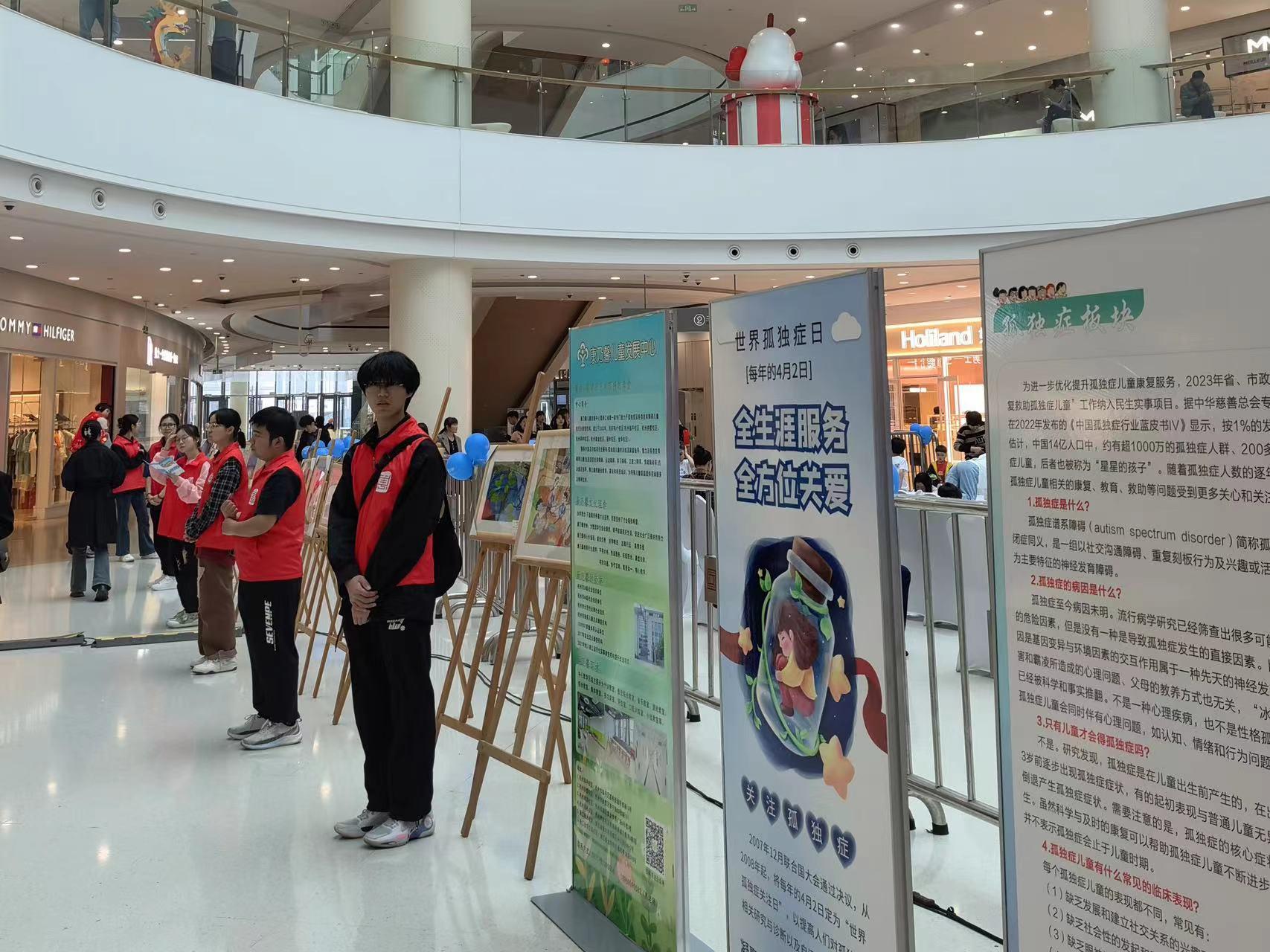 辅导员史光花老师于带领学院桫椤湾心理工作站、青年志愿者协会、23人工智能3班团支部的同学们赴杭州临平银泰城开展了一次关爱自闭症儿童的志愿服务。此次活动由杭州市临平区残疾人联合会主办,潮童星、康乃馨儿童发展中心和临平区汀州学校协办,主题是“全生涯服务,全方位关爱”。