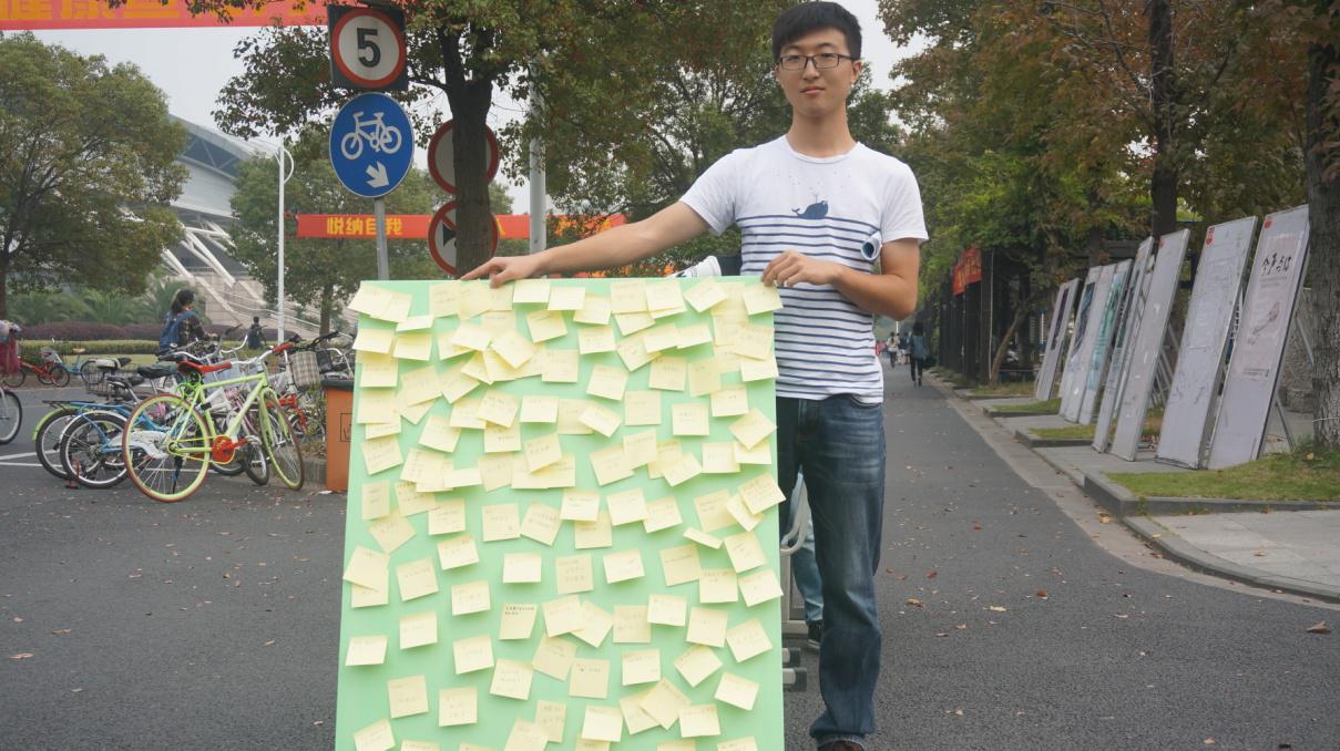 活动现场十分火热,大家都把自己的心愿和祝福语写在便利贴,贴在了特地设计好的心愿墙上。每个人都非常热情,借助这个缘由对许多人说出了自己平时想说的话。不只是信息学院各级的学生,就连国际学院的几位外国友人也在心愿墙上贴上了自己的便利贴,写下了自己的心愿。