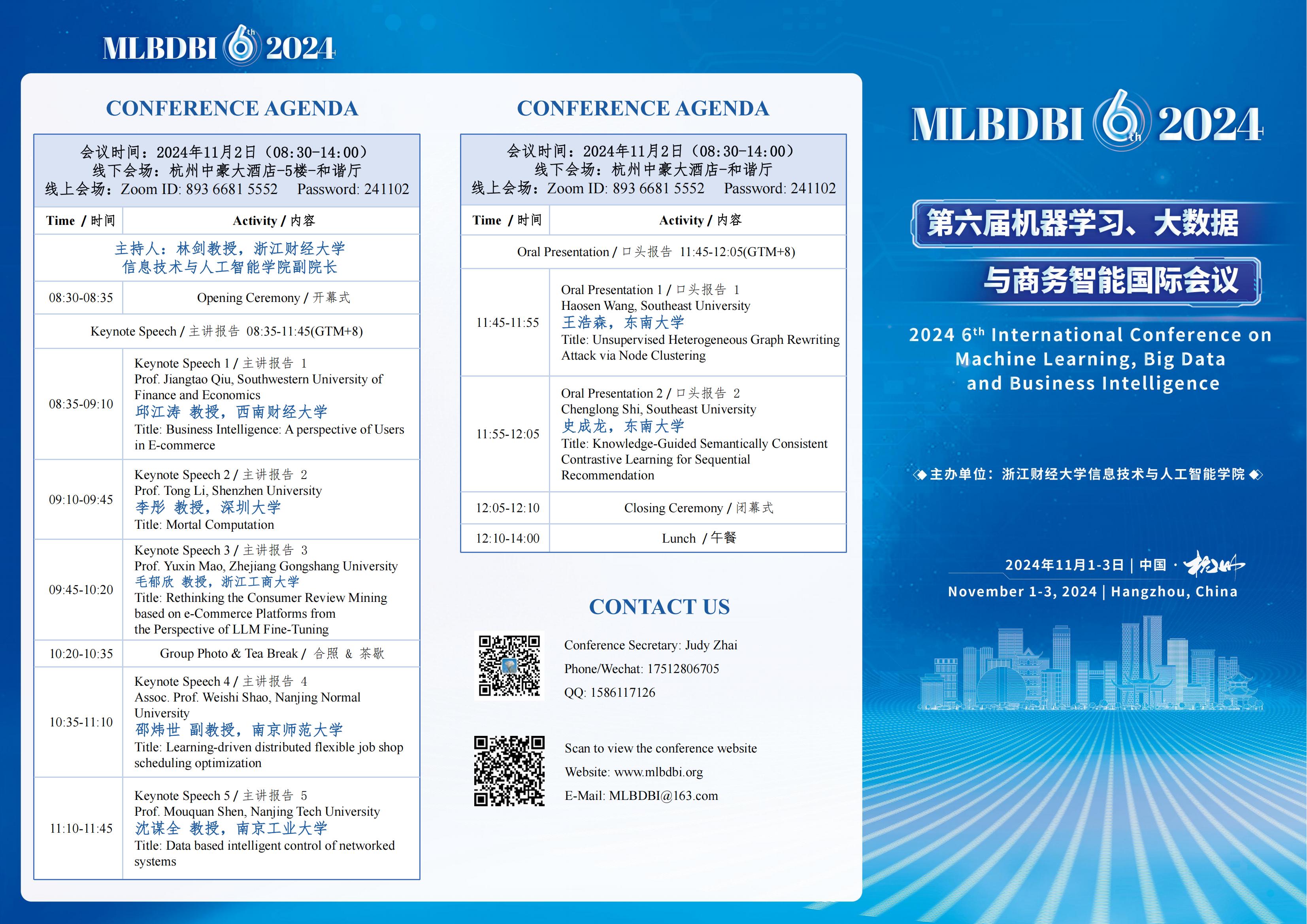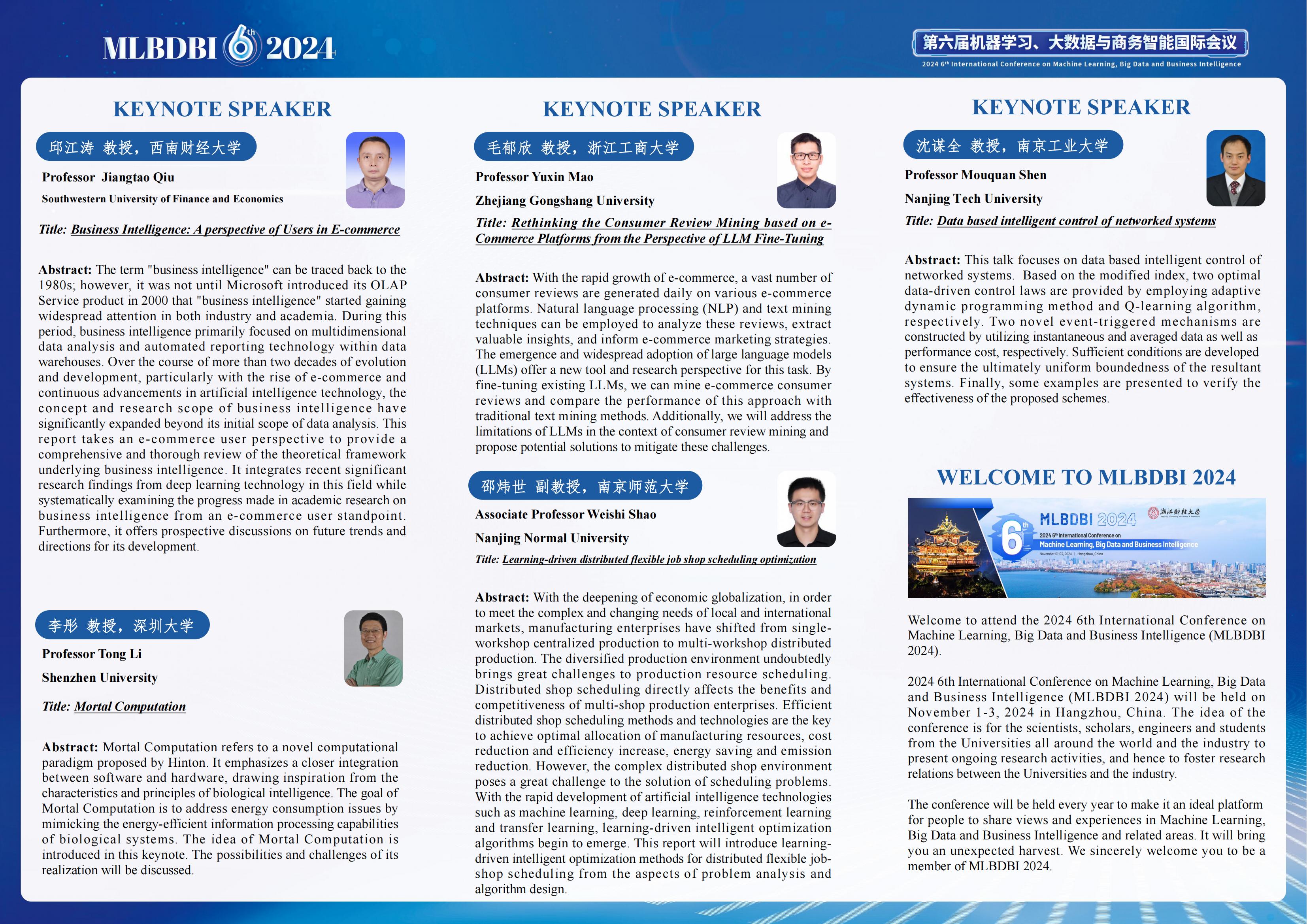 【浙财50周年司机社 学术论坛活动】第六届机器学习、大数据与商务智能国际会议