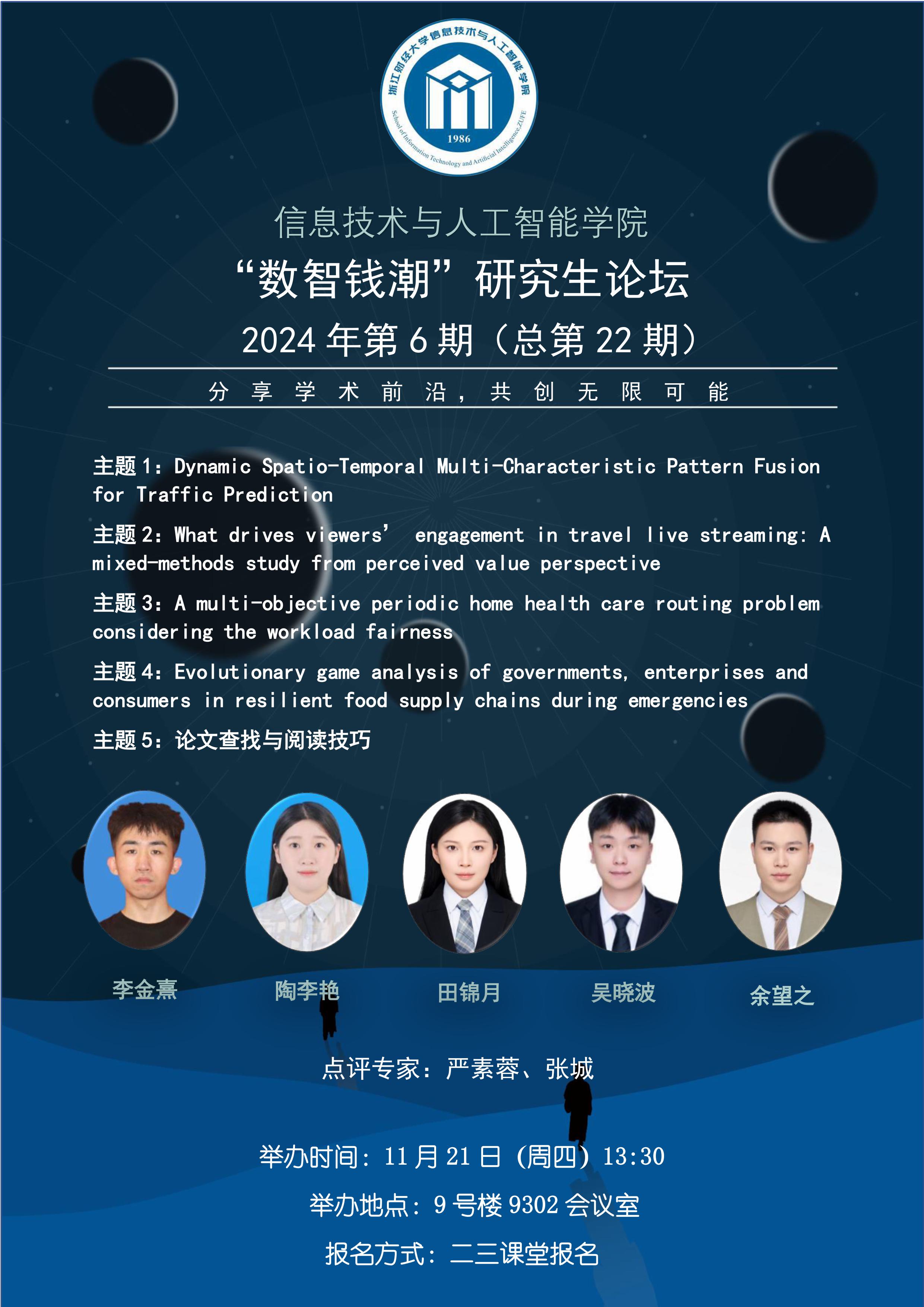 “数智钱潮”研究生论坛预告| 2024年第6期(总第22期)