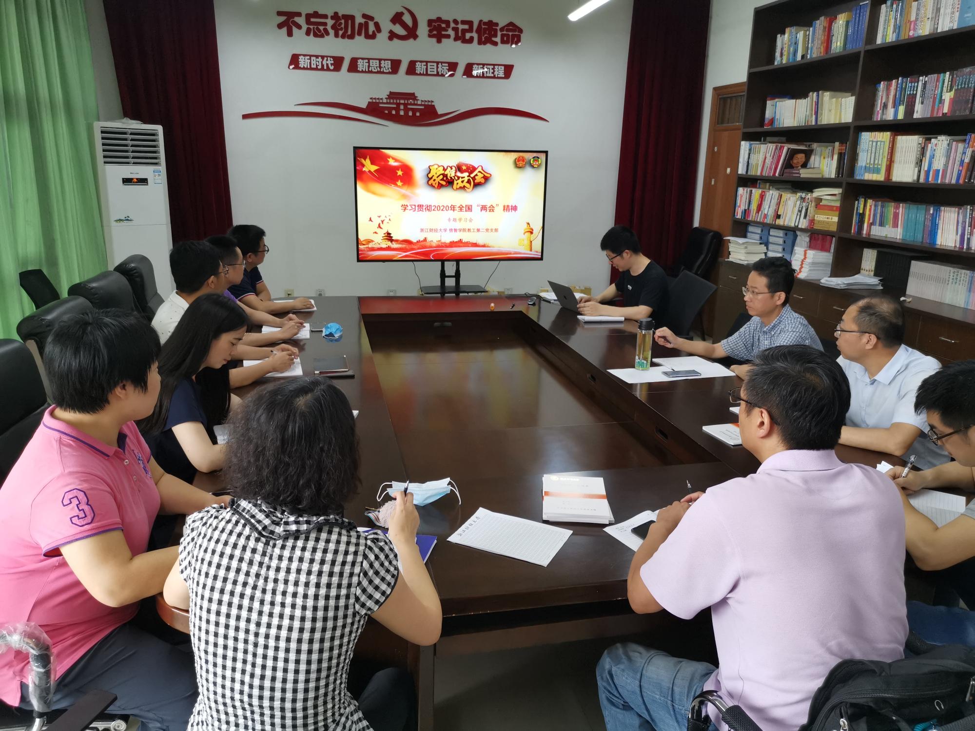 教工第二党支部在9-506会议室召开“学习贯彻2020年全国两会精神”专题会议,会议由宋海裕主持。