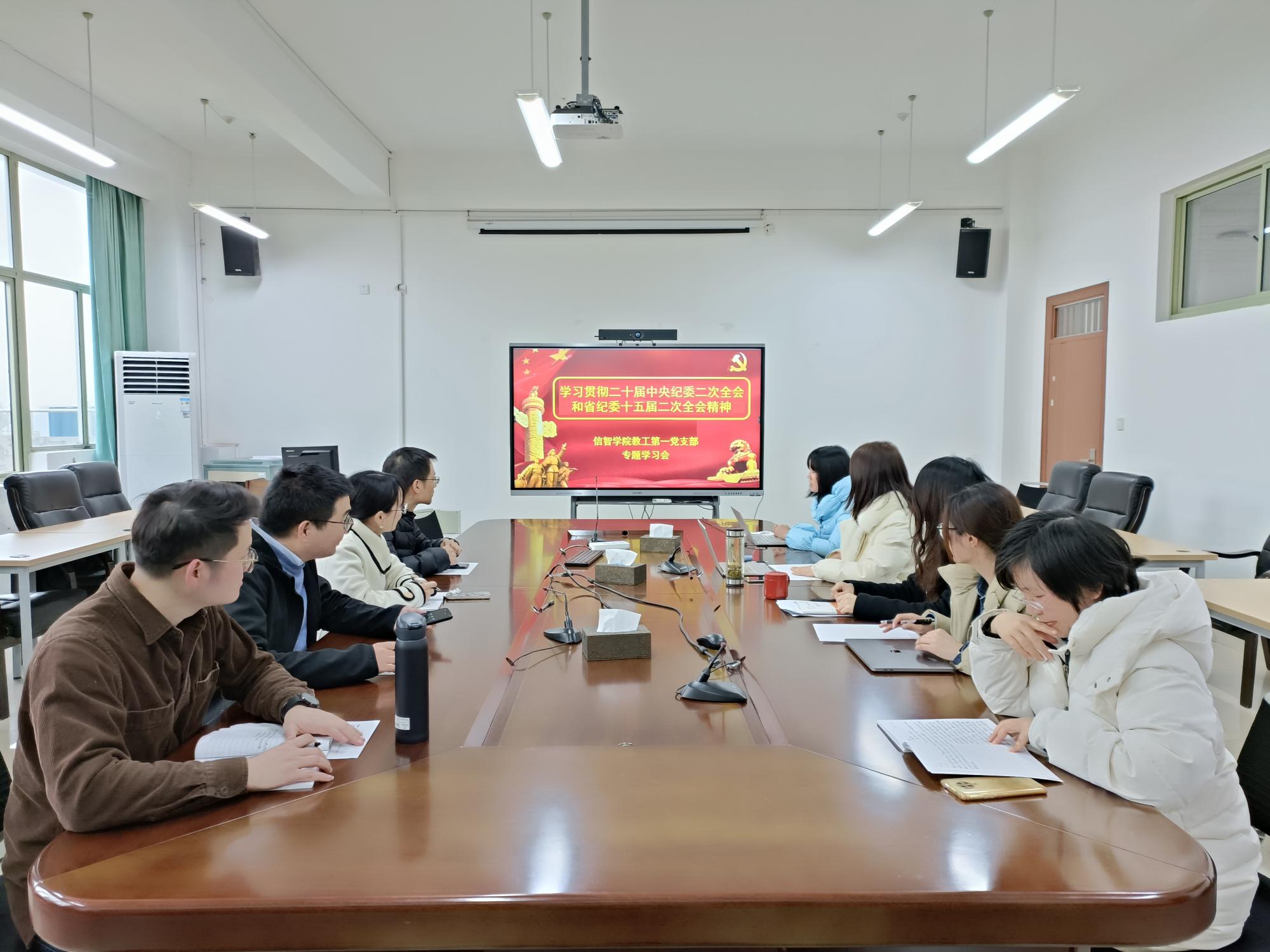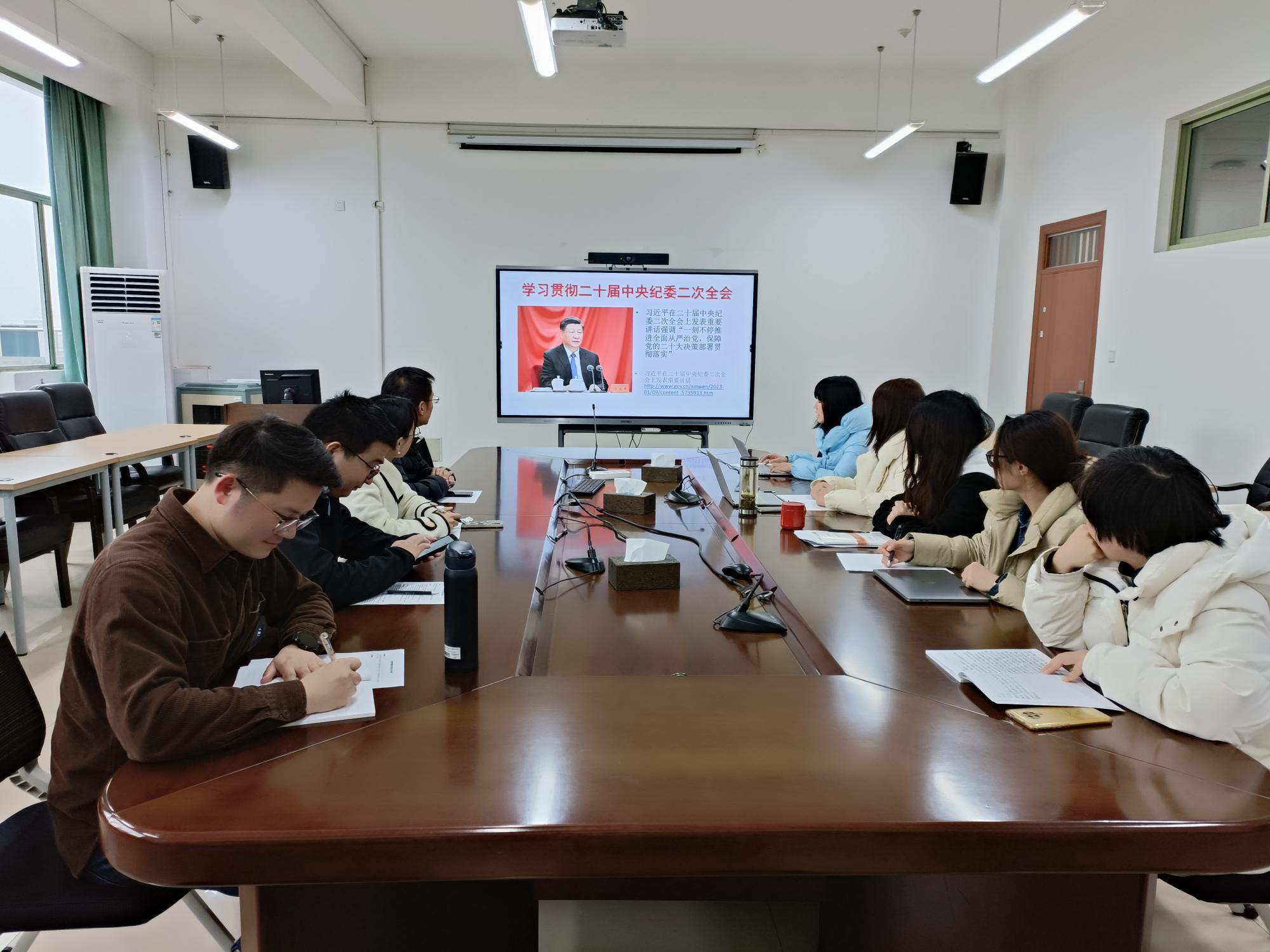 教工第一党支部在9404会议室召开《学习贯彻二十届中央纪委二次全会和省纪委十五届二次全会精神》的专题学习会。支部党员首先集体学习了习近平总书记在中国共产党第二十届中央纪律检查委员会第二次全体会议上发表的重要讲话,随后学习了省委十五届二次全会精神以及《全面贯彻落实党的二十大精神 奋力打造新时代清廉建设高地》的工作报告。