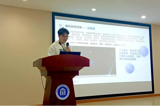 首先,陈明晶老师以轻松幽默的风格对“挑战杯”系列竞赛进行了详细概述,着重绍了“揭、红、黑”专项赛即揭榜挂帅、红色专项和黑科技三类专项赛,并鼓励同学们根据自身情况选择赛道,积极参与。在陈老师细心地解说下,同学们对挑战杯有了更为深刻的认识。