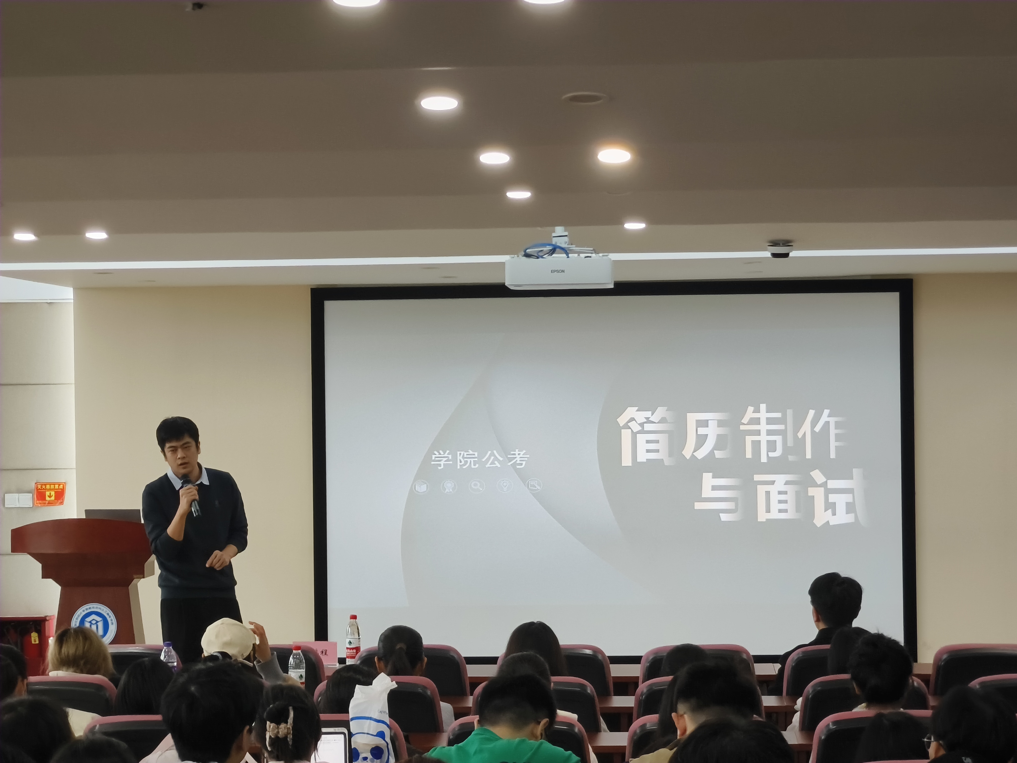 简历制作与优化实战专题讲座在学院9号楼302报告厅顺利举行。本期讲座由院团委学生会实践部承办,特邀学院公考(企业)教师苏鹏程主讲,院学办主任洪宝华与司机社