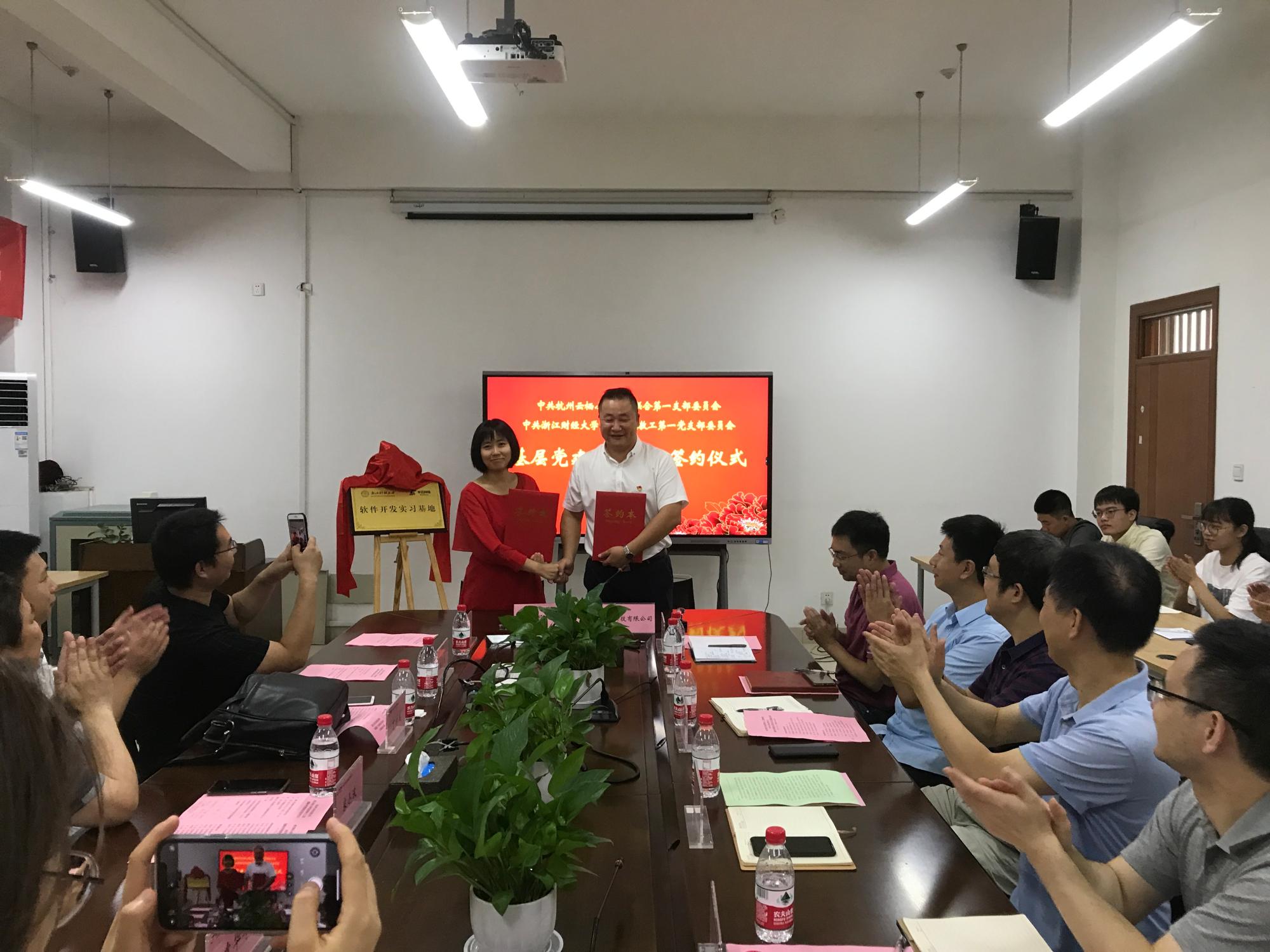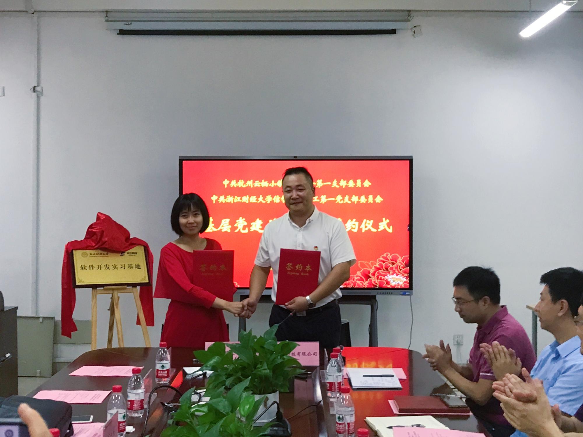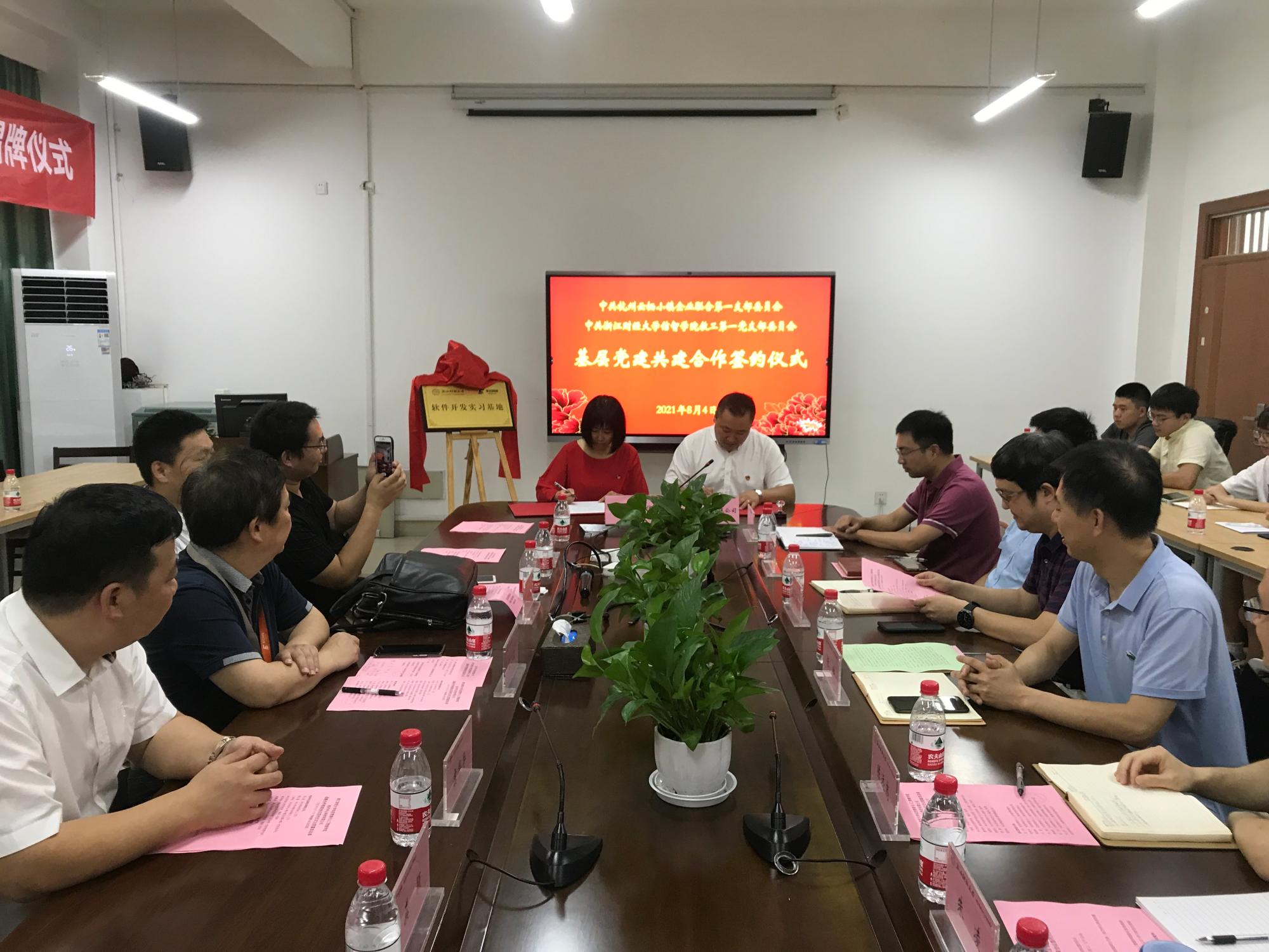 信息管理与人工智能学院教工第一党支部与中共杭州云栖小镇企业联合第一支部开展党史学习“不忘初心、牢记使命”基层党建共建合作,并于8月4日在9号楼404会议室举办支部共建仪式。出席仪式的与会嘉宾有司机社