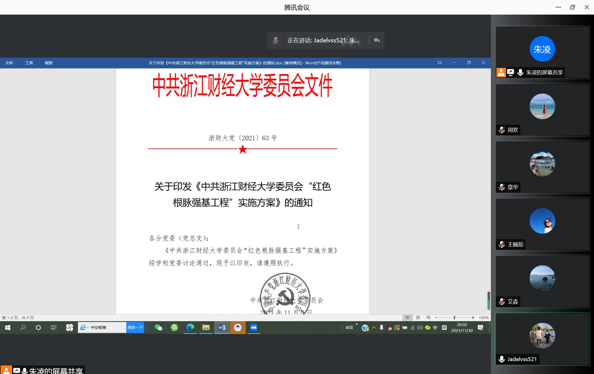 委员会“红色根脉强基工程”实施方案>的通知》的文件,然后带领大家深入学习了文件内容,并就文件的总体要求、“六个全面”目标、六个夯实措施和组织保障方面做了详细的讲解。朱凌指出,为贯彻落实党中央要求,希望各党员同志深入学习浙江省委对全面实施“红色根脉强基工程”的有关部署,为进一步提升学校党建工作质量提供坚强组织保障。