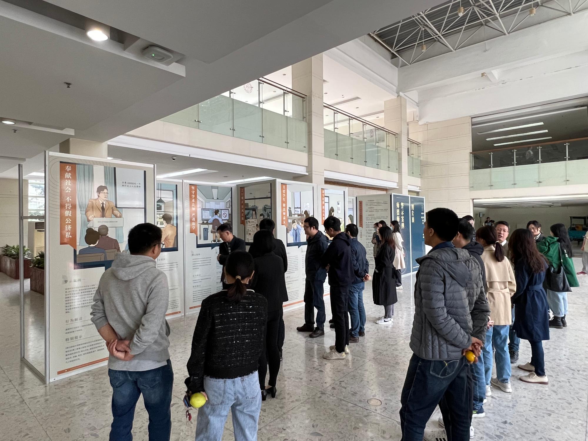组织学院教职工参观学校师德师风警示案例图片展。学院党政领导班子成员,全体教职工参加学习。