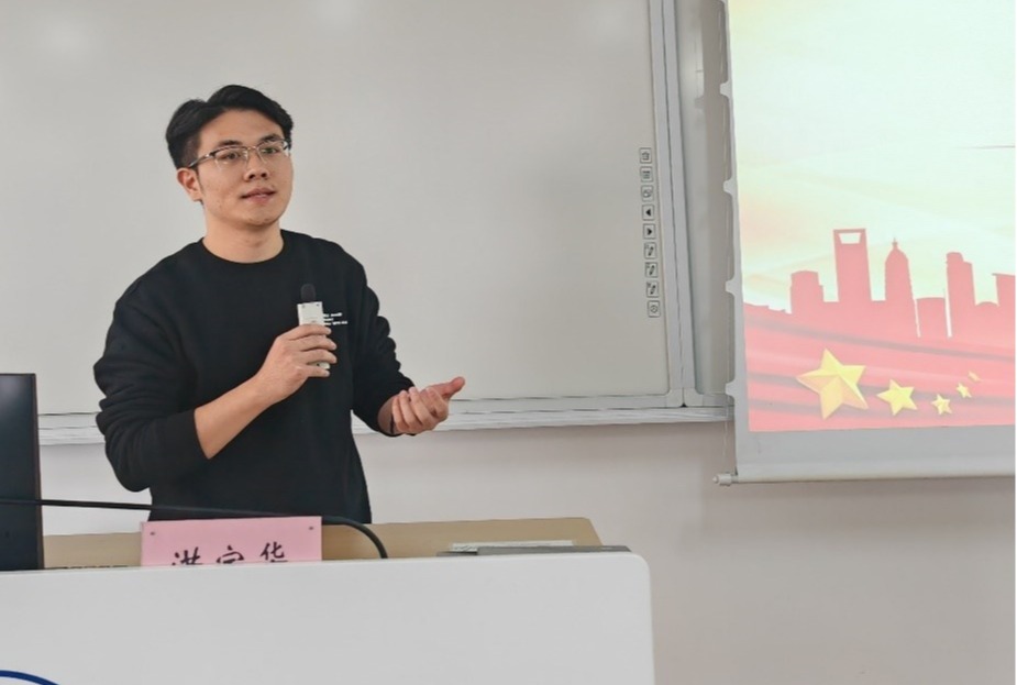 学生第六党支部书记马硕以“百年党史,万里征程”为主题,围绕中国共产党发展历史这一中心,深入剖析新民主主义革命时期,社会主义革命和建设时期社会主义现代化建设时期党的发展历程,引导同学们从党史中汲取智慧和经验,通过学习党史坚定自己的信仰和理想,倡导党员要重视党史学习,提升自己的党性修养。