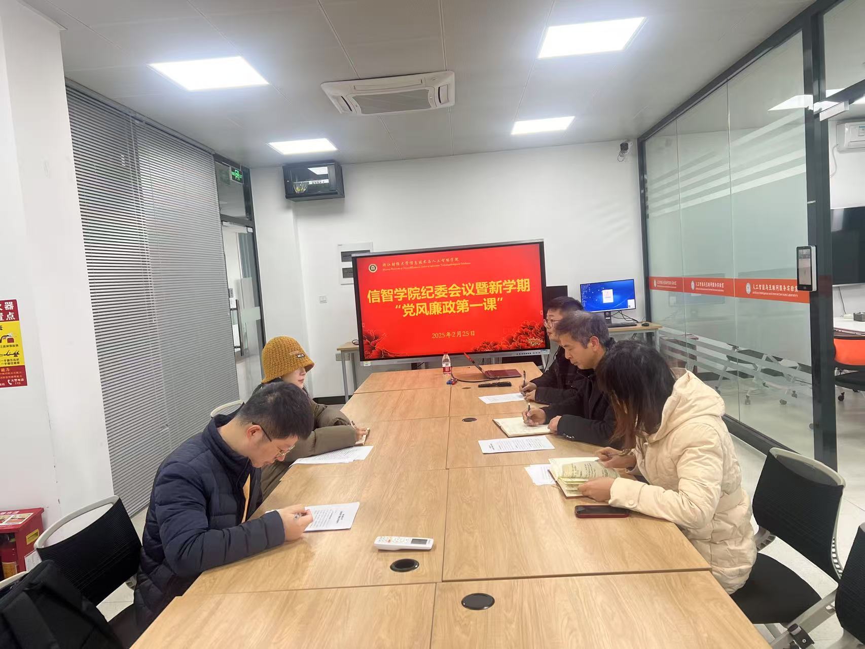 2月25日上午,学院纪委在9301C会议室召开会议,旨在传达“党风廉政第一课”学习要求,并组织签订司机社
