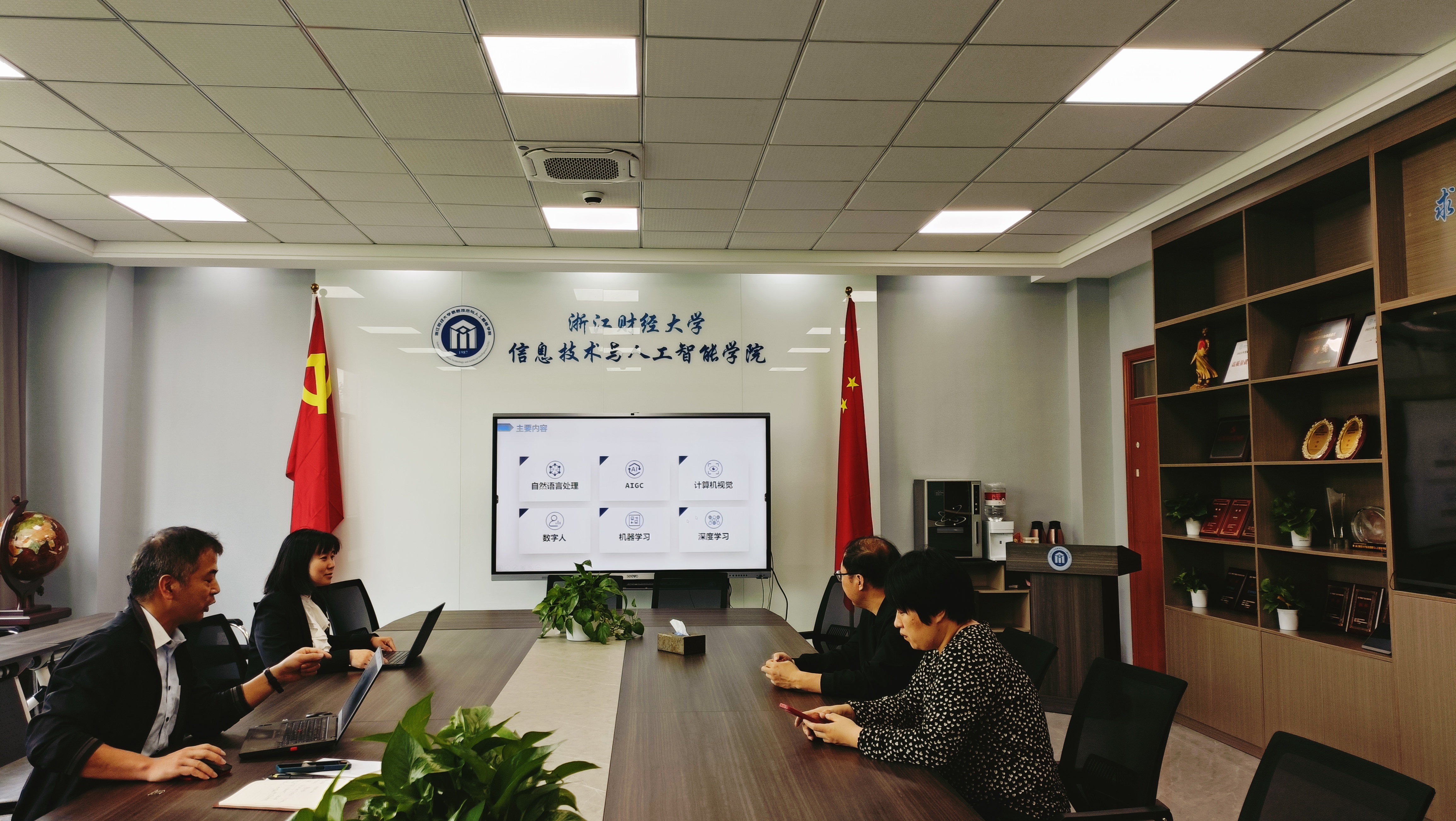 会议根据新培养体系指导思想,从人工智能通识课程涉及的自然语言处理、AIGC、计算机视觉、数字人、机器学习、深度学习等方向展开讨论,并针对基本概念引入、前沿案例融合、实验设计应用等问题进行了沟通。同时,为了让人工智能技术能够在财经类院校进行更加有效地普及和推广,与会教师就人工智能通识课和AIGC创新赛的结合推进做了深入的交流和探讨。