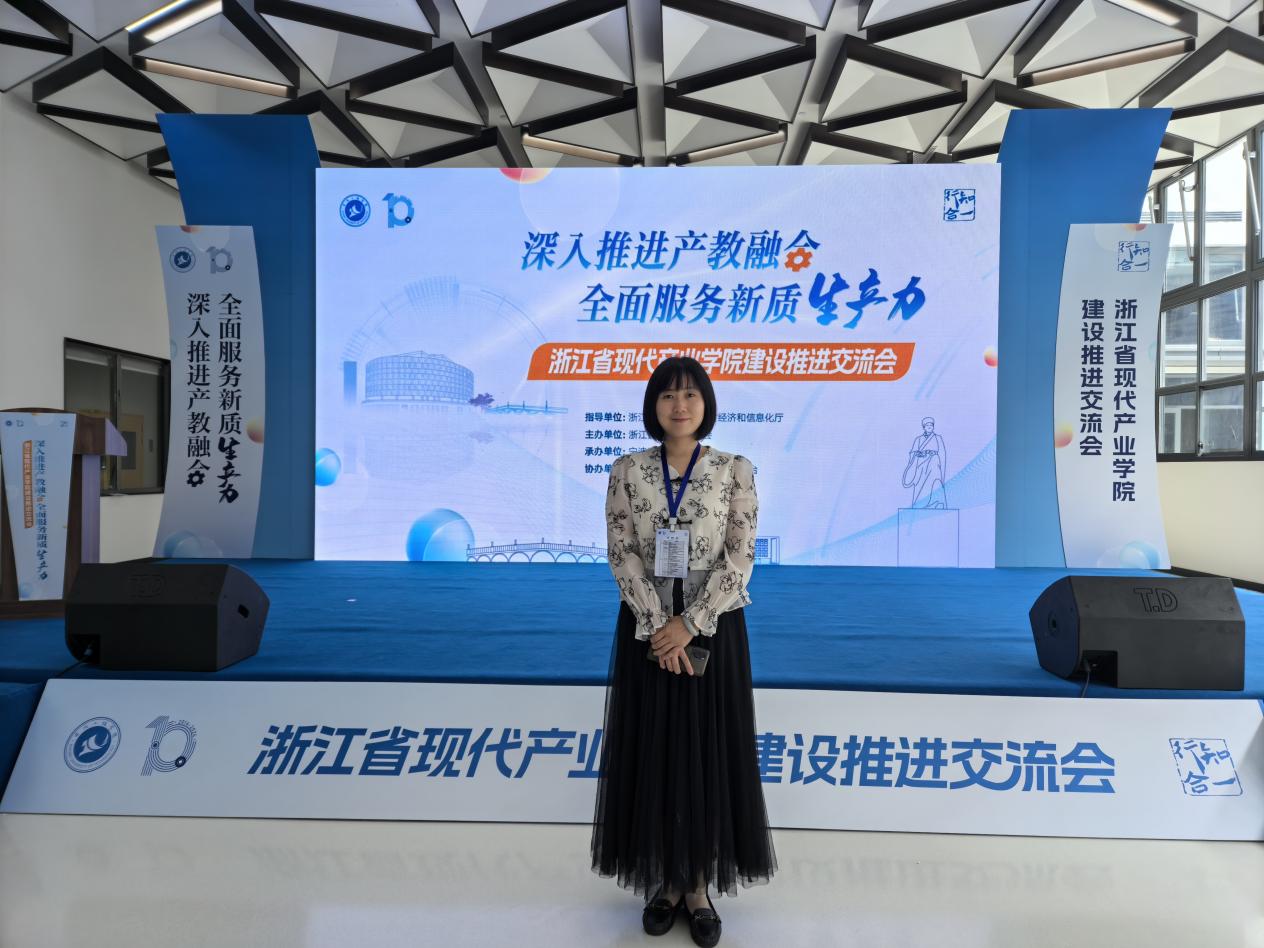 教学院长朱凌受邀参会交流,并代表学校智能经济产业学院进行展示。