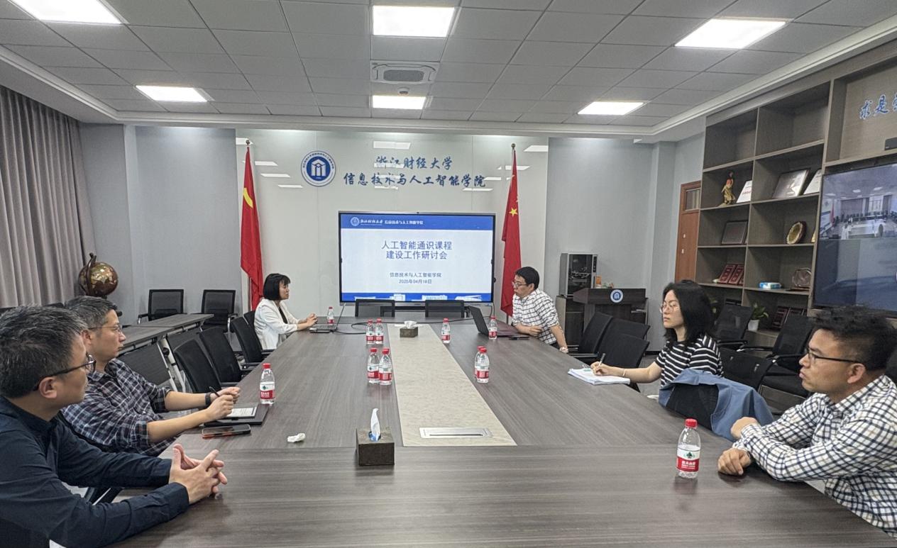 于9404会议室召开人工智能通识课程建设工作研讨会。学院教学院长朱凌主持会议,冯小青、高刚毅、杨泽等教师线上参会,陈明晶、章华、徐吉锋、刘亚楠、陈宪宇、姜罗罗等教师现场出席。