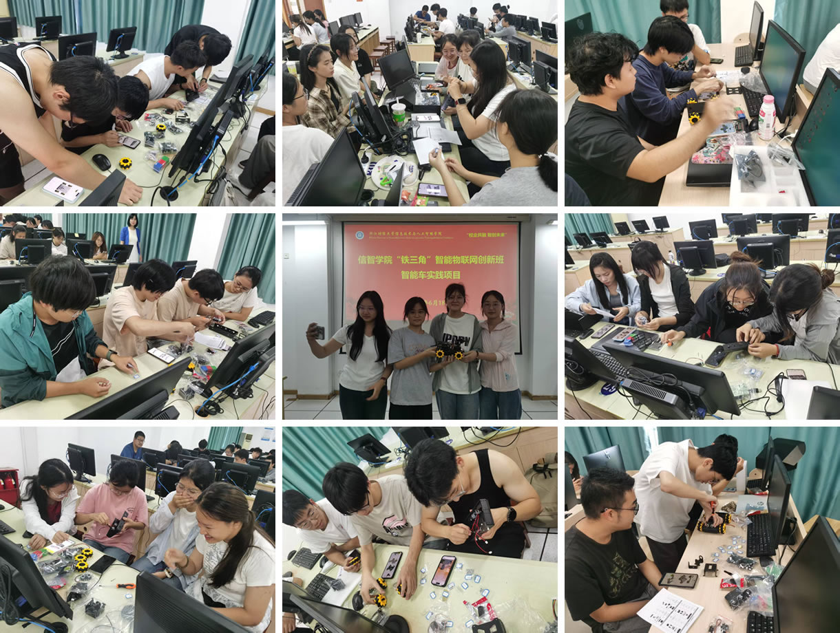 第三阶段是学生分组组装智能车并测试。学生们以小组为单位,领取了智能车套件后,便迅速投入到紧张而有序的组装工作中。在专业教师的指导下,学生们分工明确,有的负责硬件组装,有的负责软件编程,有的负责调试优化。经过一番努力,一辆辆智能车在学生们的手中逐渐成型,并进行了测试。整个测试现场气氛热烈,学生们积极交流、相互学习,充分展现了计算机系学生的专业素养和团队协作精神。