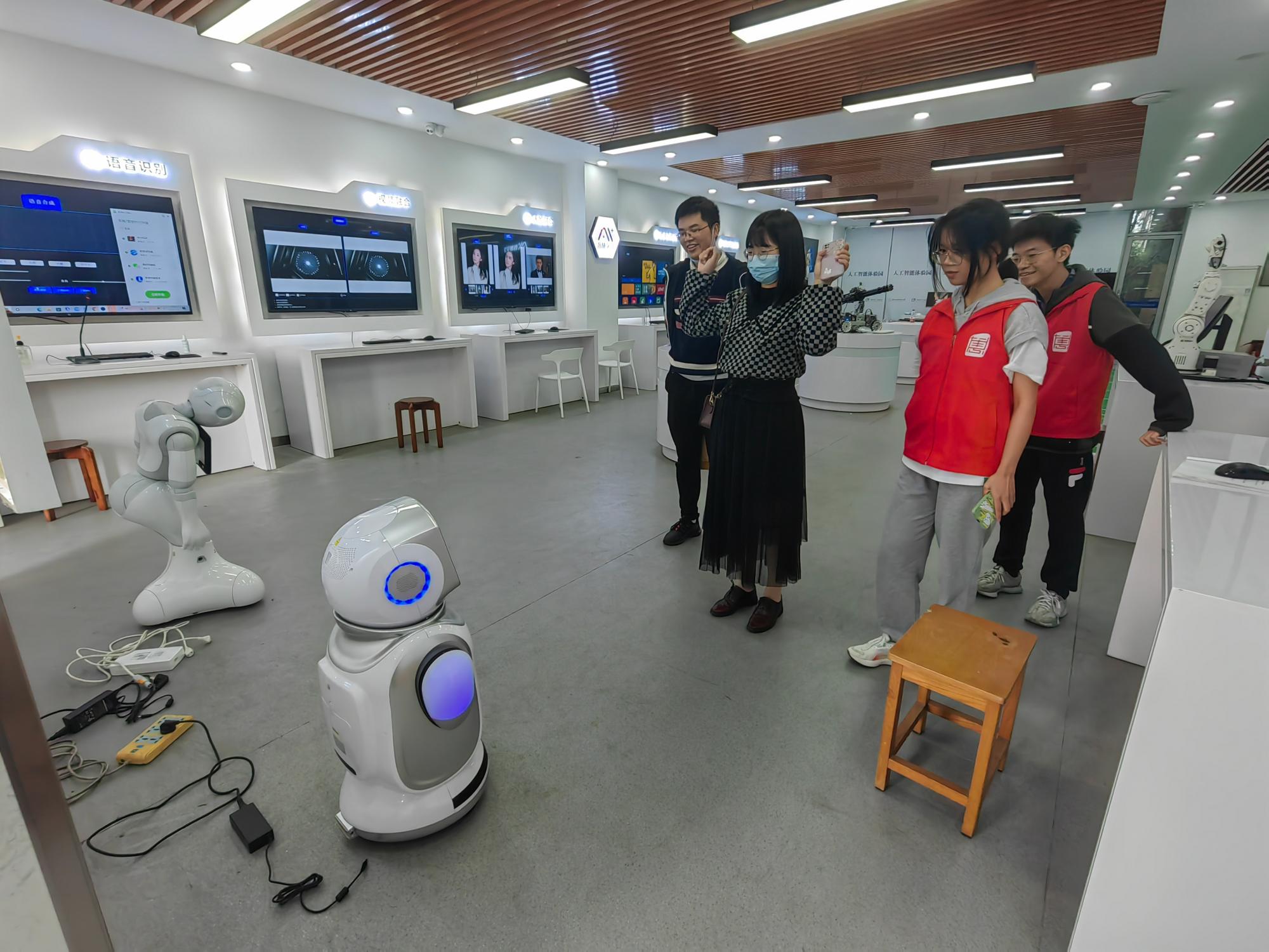 在人工智能体验园,“‘信’聚初心,‘智’创未来系列活动之‘AI+力‘人工智能创新成果体验”吸引了许多校友前来。在志愿者的引导下,返校的校友们在这里体验VR,看会说会跳和会在赛道上奔跑的机器人。母校变化如此之大,科技发展如此之快,让他们感受到信息技术和人工智能的强大活力,也为司机社