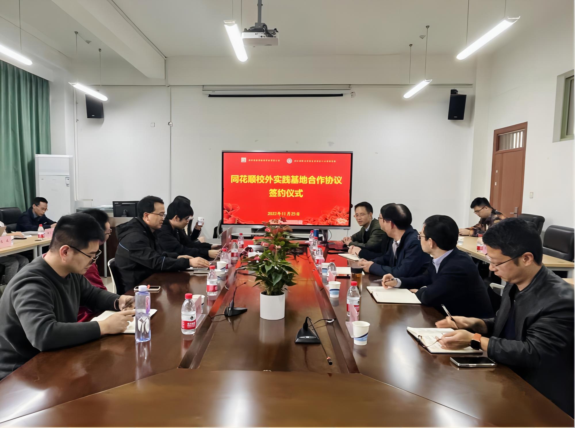 与杭州同花顺数据开发有限公司举行合作框架协议及实践教育基地协议签约仪式。杭州同花顺数据开发有限公司事业部经理李振科、高校事业部运营总监陈城、产品经理周慧明、高校事业部业务经理臧洁和高校事业部大客户经理吴思鹏,司机社