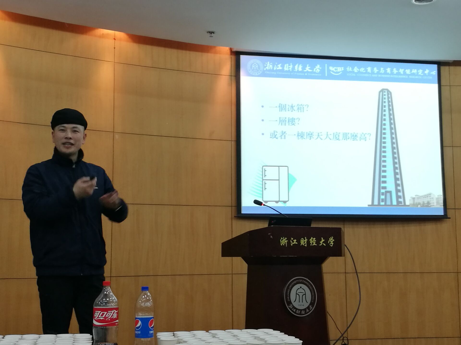 杨水清博士以“一张纸折叠51次将会有多厚”这一问题引入,引发了全场师生的争相回答,探讨了人生规划的本质。杨博士以折叠51次的厚度超过了地球和太阳的距离这一回答给予同学们启示:没有方向、缺乏规划的人生,就像折叠51次的白纸,尽管你工作得再出色,也只是简单的叠加;只有学会举一反三,才会得到更好的效果。姜辉博士与同学们互动探讨了“百事可乐悖论”,他提出了一个新名词“神经营销学”,即运用神经学方法来确定消费者选择可口可乐背后的脑神经机制,并运用大量实例为师生进行讲解。两位博士精彩的互动演说吸引了很多在场听众参与其中。