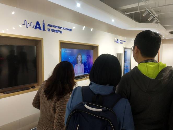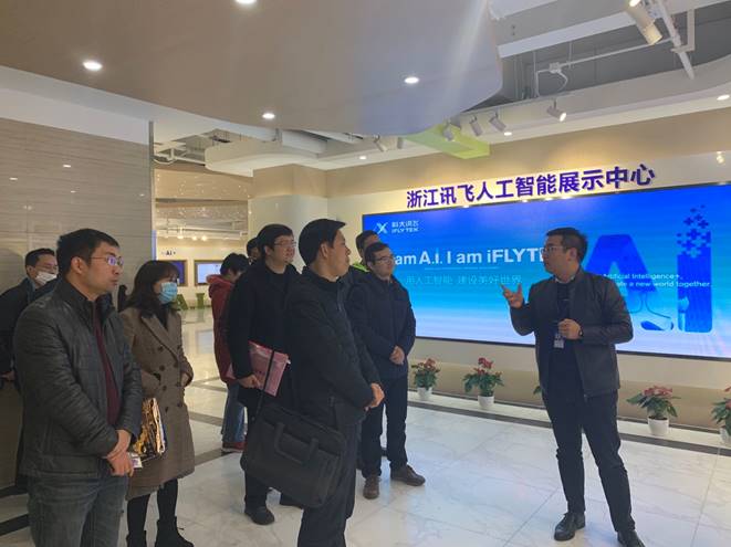 学院一行首先来到浙江讯飞人工智能展厅参观,展厅由讯飞开放平台、移动互联、智能家居、语音转写终端、AI+、智能汽车、讯飞幻境、智慧教育和智能机器人等项目组成。