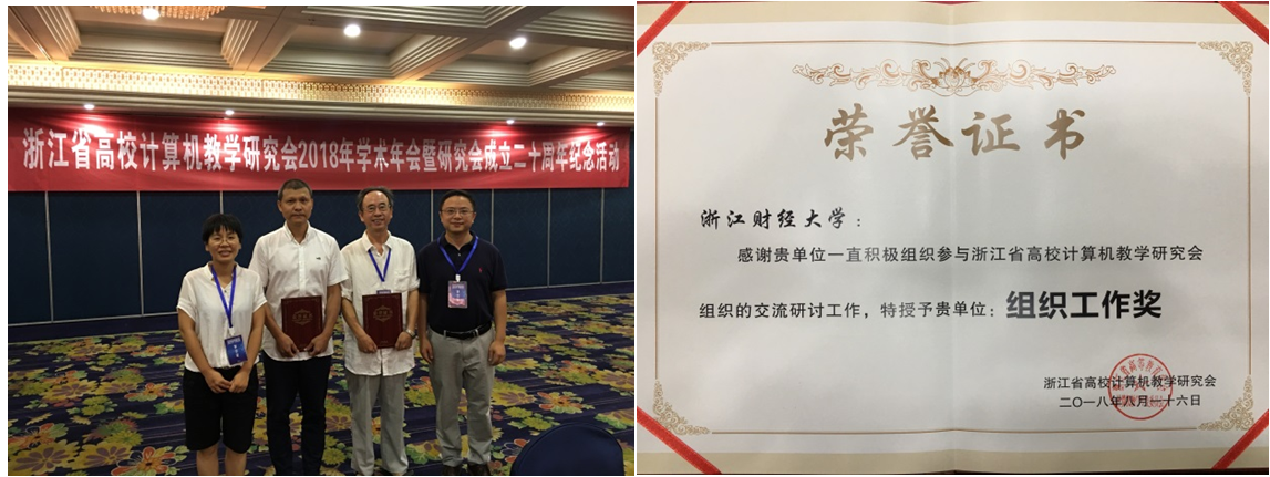 长期以来积极参与浙江省高校计算机教学研究会组织的交流研讨工作,在本次研究会成立二十周年纪念活动中被授予组织工作奖。